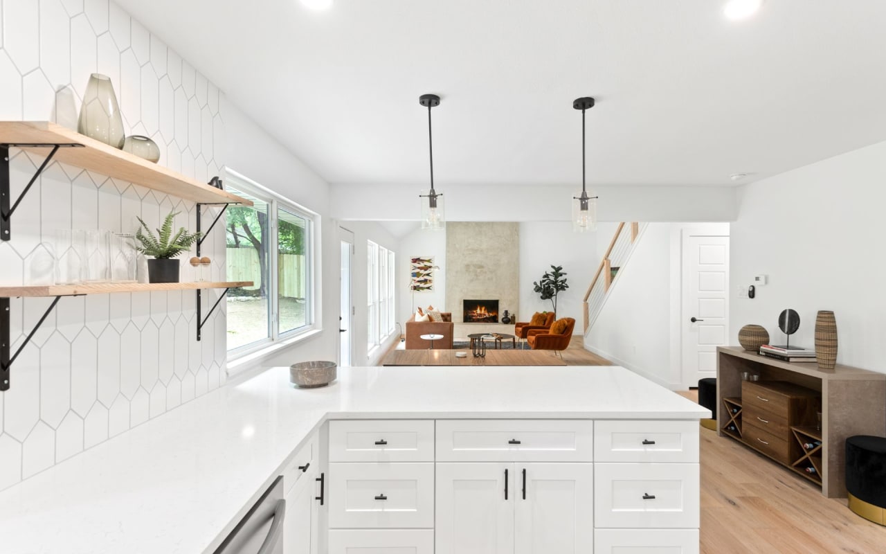 Fantastic south Austin remodel designed by Silver Homes ~ Wonderful open and bright floor plan ~ Stunning kitchen features quartz countertops, soft-close wood cabinetry, picket backsplash & oak shelves ~ All new black/white Elevate windows, 25/yr onyx roof & HVAC system~ Engineered 5" White Oak wood flooring on first floor w/ half bath ~ Spacious master on main floor w/large walk-in closet & fantastic master bath ensuite.