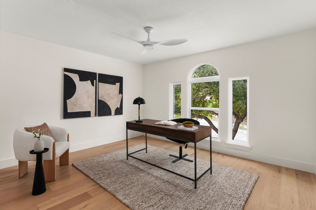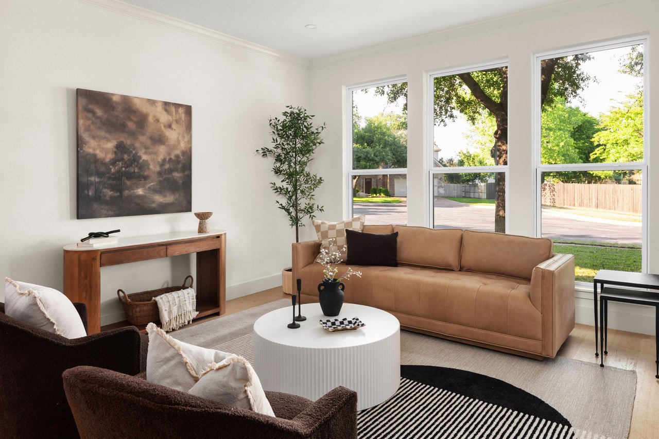 An Organic Natural Sanctuary by Silver Homes in Austin, TX : : An Organic, Earthy & Natural design this fully restored Brush Creek home is truly remarkable. : : Every detail has been thoughtfully chosen to create beauty, love and a strong feeling of A Sanctuary. : : From the moment you arrive, the sleek natural exterior creates excitement and pride. : : Opening the new custom built steel front door you are immediately welcomed by the captivating entry way and all new white oak staircase + railings. : : A gorgeous kitchen features custom built white oak cabinetry, Taj Mahal waterfall quartz and backsplash, new appliance suite, pantry & curved breakfast bar. : : Spacious Primary Bedroom with a stunning bathroom ensuite plus custom oversized walk-in closet : : The towering ceilings, abundance of light + shadows, multiple living and dining areas plus 5 spacious bedrooms with entertainment room, there is nothing like it for under $1M in Austin, TX : : Brushy Creek is renowned for its top rated schools, community center with pool, sports facilities and gym, hike and bike trails and wonderful community events. : : All new roof with solar panels, new black elevate windows, two new HVAC systems, irrigation, St. Augustine Sod and Fence.
