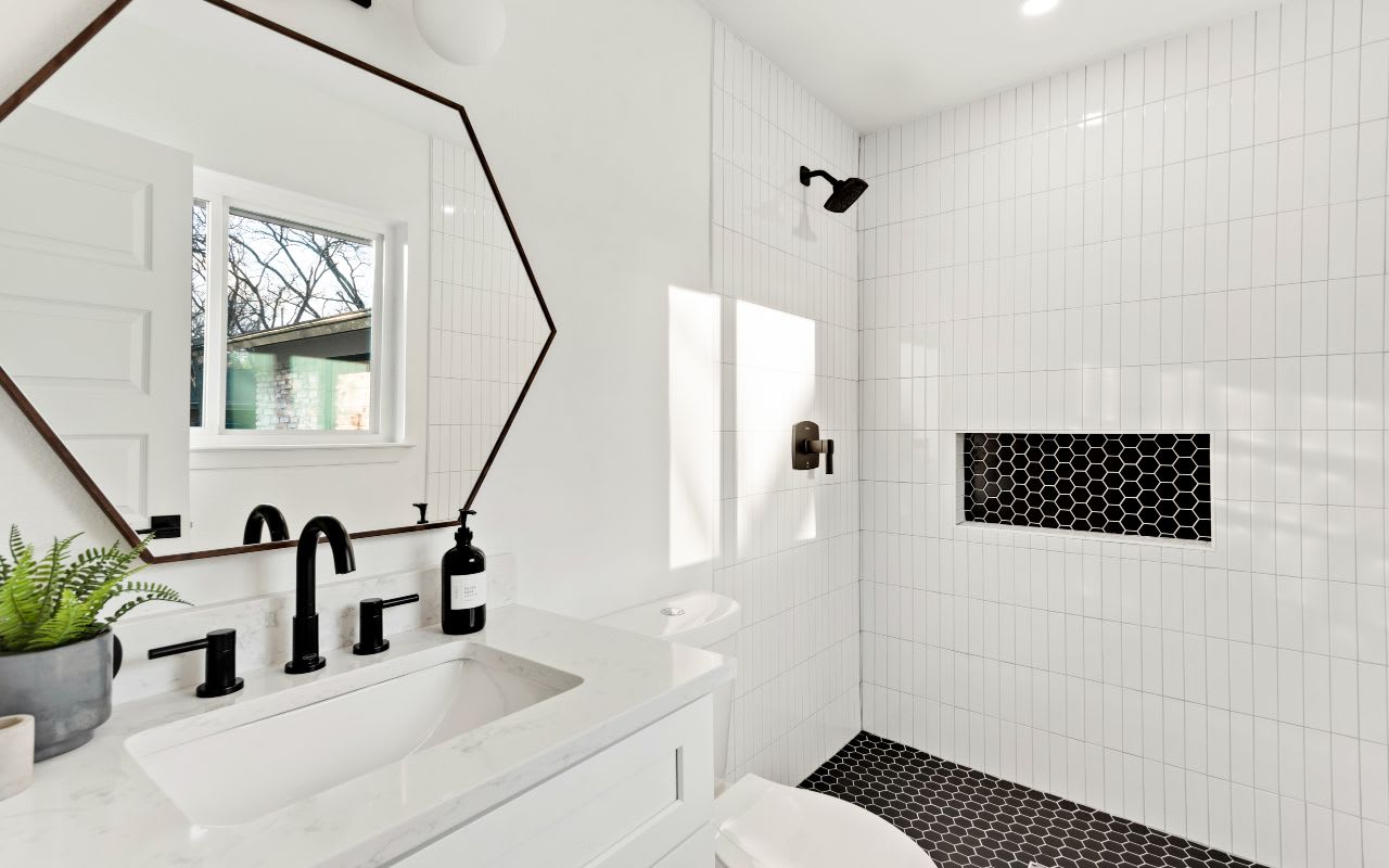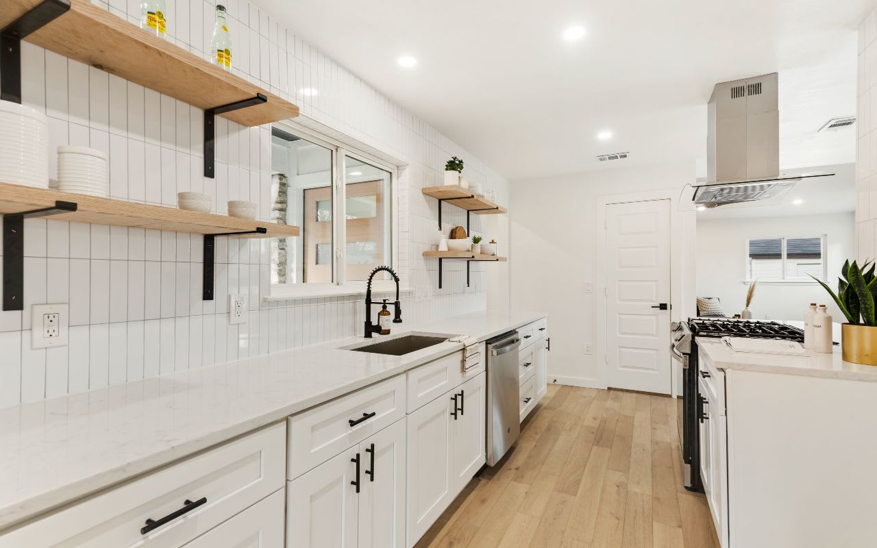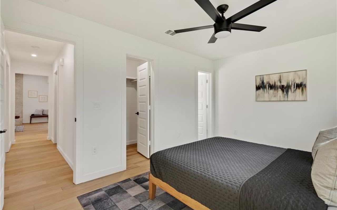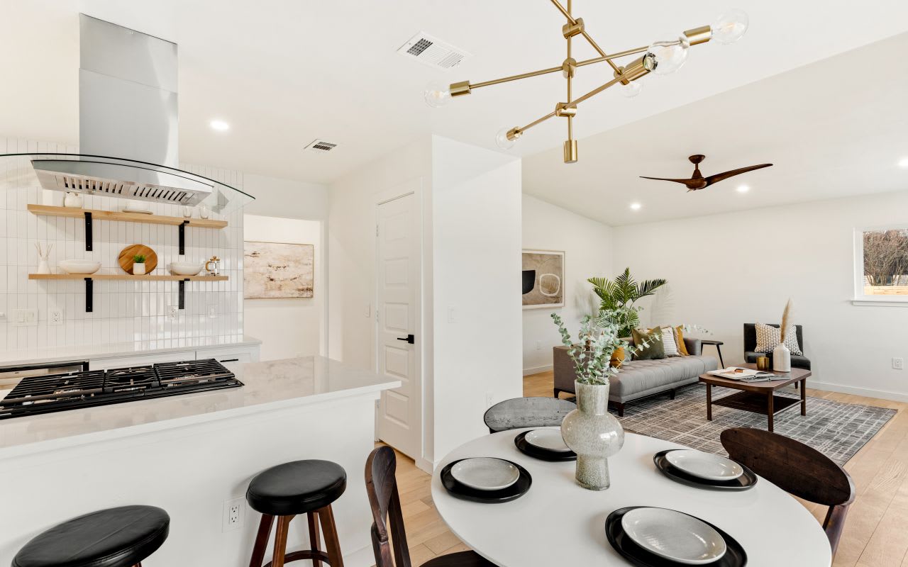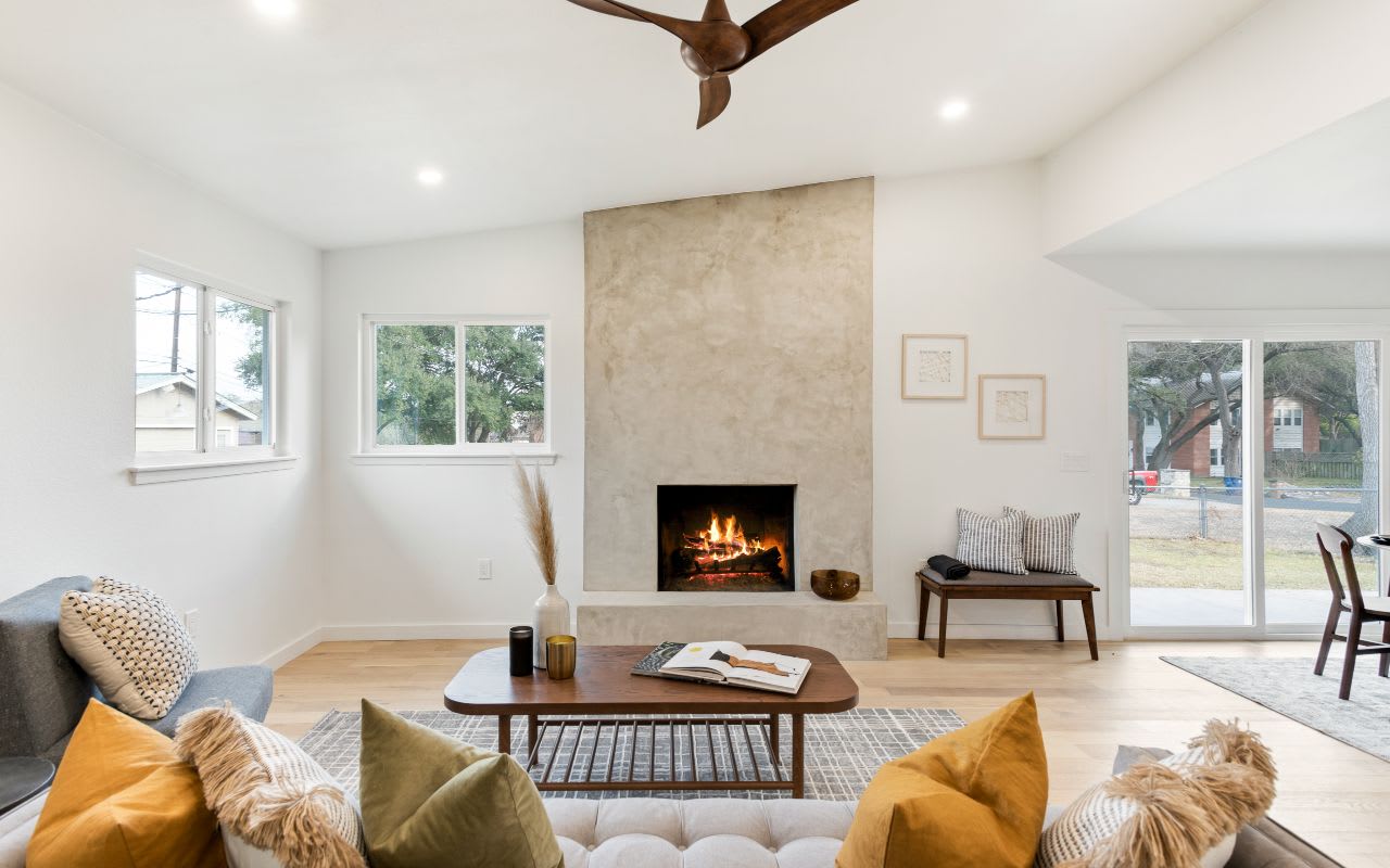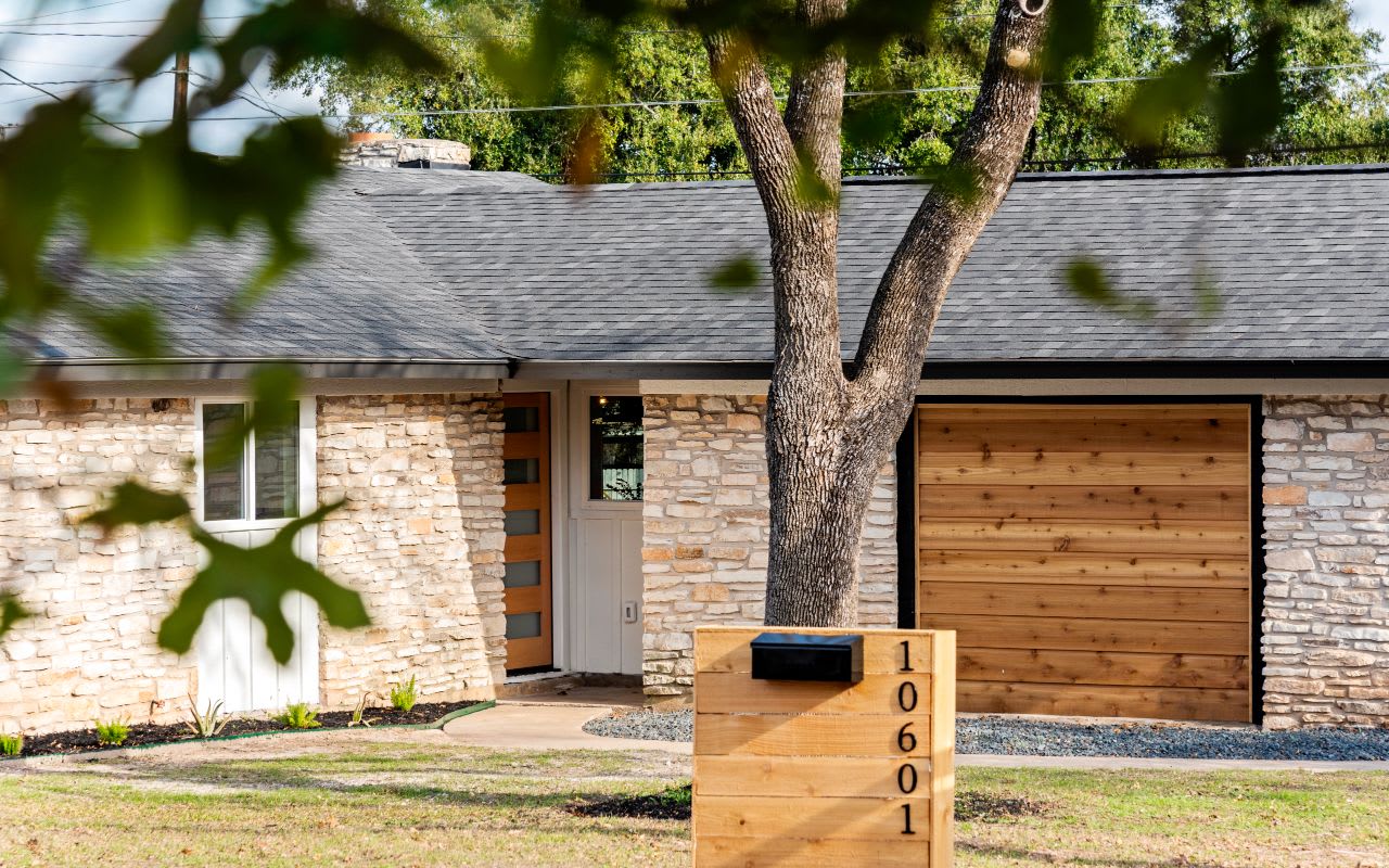 Stunning mid-century modern restoration by Silver Homes in Windsor Hills ~ Wonderful open concept w/vaulted ceiling & new smooth concrete finish fireplace ~ Beautiful Oak wood flooring throughout ~ Gorgeous kitchen features Carrera Mimi quartz countertops, soft-close cabinetry, soldier stack backsplash & Douglas fir white oak shelves ~ Full Systems upgrade include All new PVC Plumbing system, new electrical, Low-E windows & 30/yr architectural onyx roof ~ Spacious master bedroom w/walk-in closet & gorgeous designer bathroom ~ Excellent large corner lot, w/200+ SQFT converted shed/office not included in SQFT ~ Professional landscaping, all trees trimmed & new wood fence ~ Close to Domain, IBM, Mueller, DT.